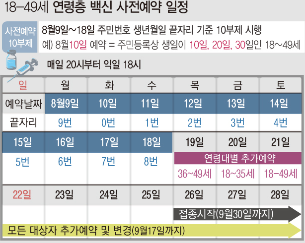 for "백신 10부제 / 뉴스핌 - 종합 질병청 "8월 9일부터 18~49세 백신접종 예약...주민 ..."